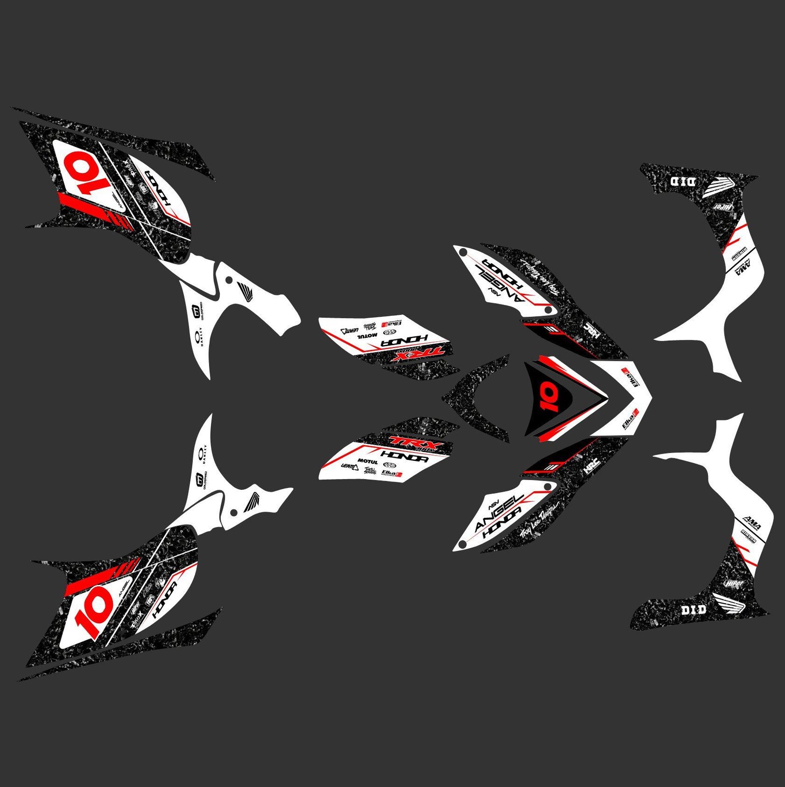 Pour une personnalisation encore plus poussée, vous pouvez customiser votre Kit déco 100% Perso Honda 700 TRX avec nos différentes options comme la base du Kit déco, la finition et pourquoi pas ajouter votre pseudo ou bien changer le numéro.