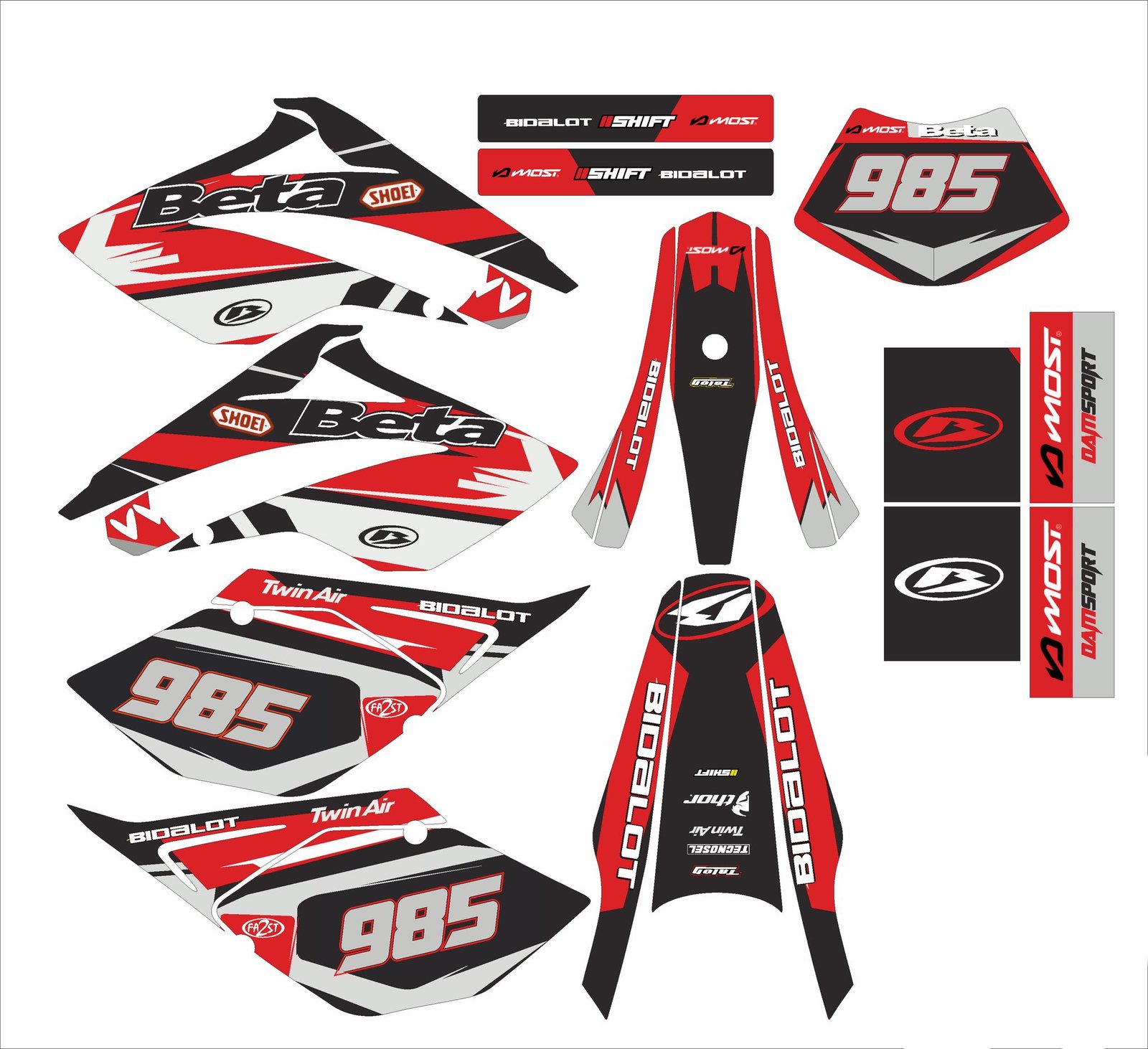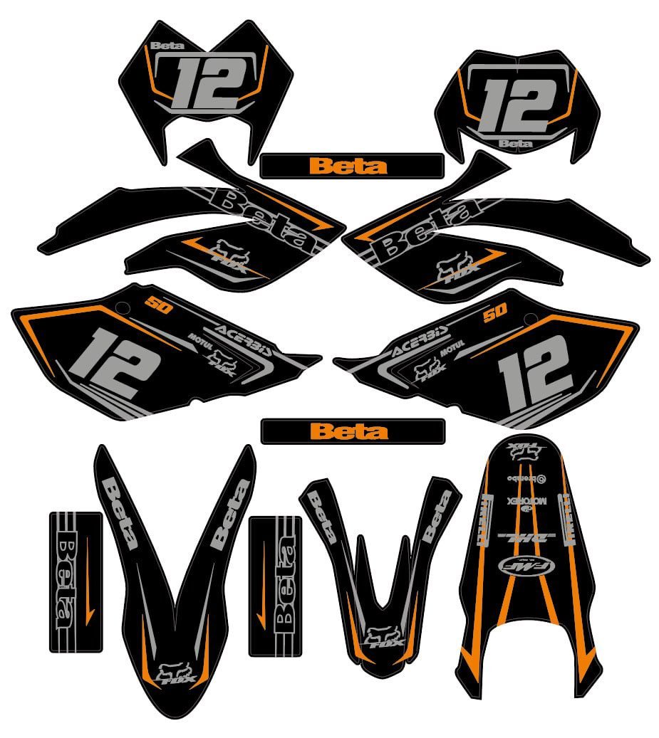 Pour une personnalisation encore plus poussée, vous pouvez customiser votre Kit déco Beta 50 – Red Line 2006-2010 avec nos différentes options comme la base du Kit déco, la finition et pourquoi pas ajouter votre pseudo ou bien changer le numéro.