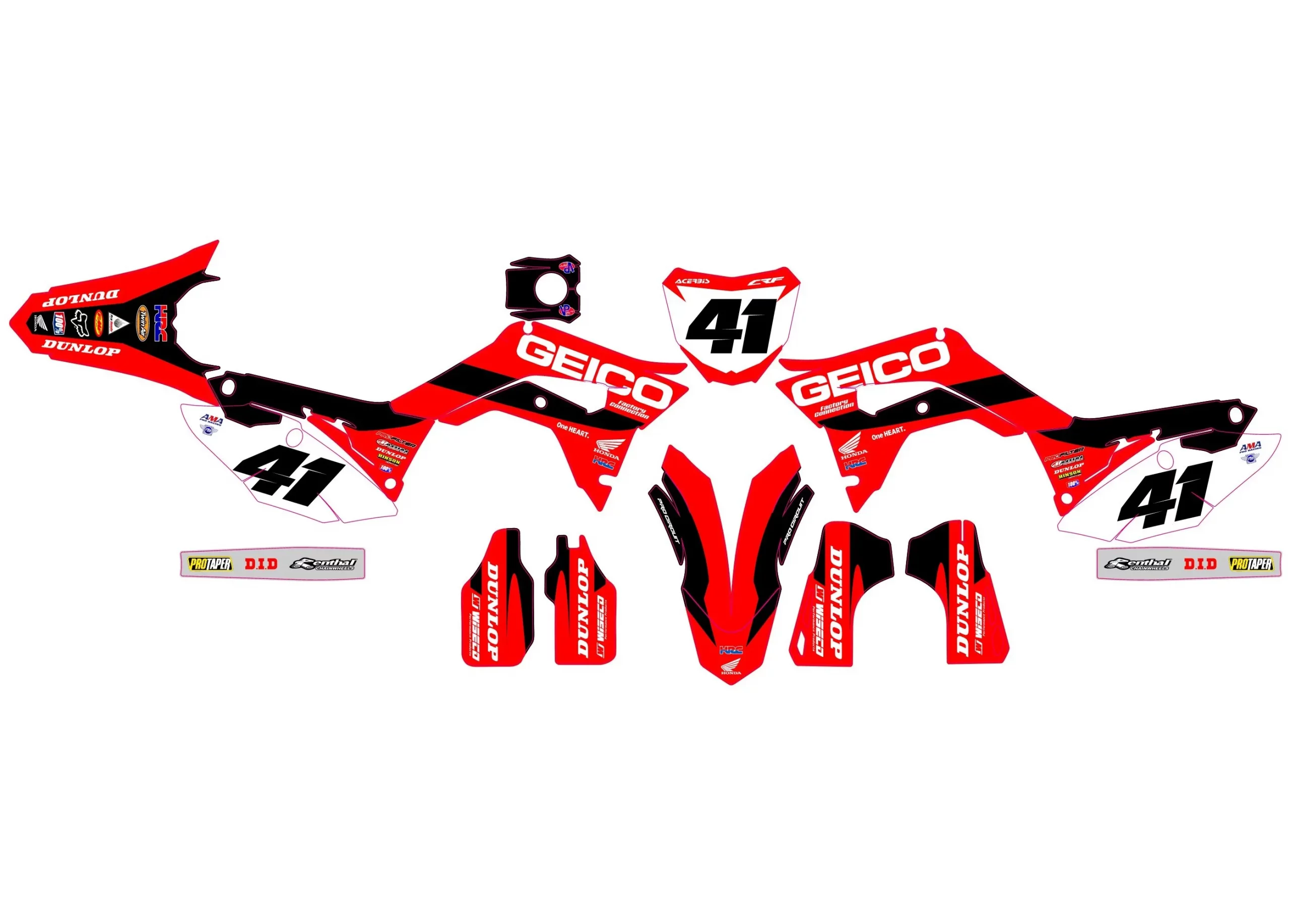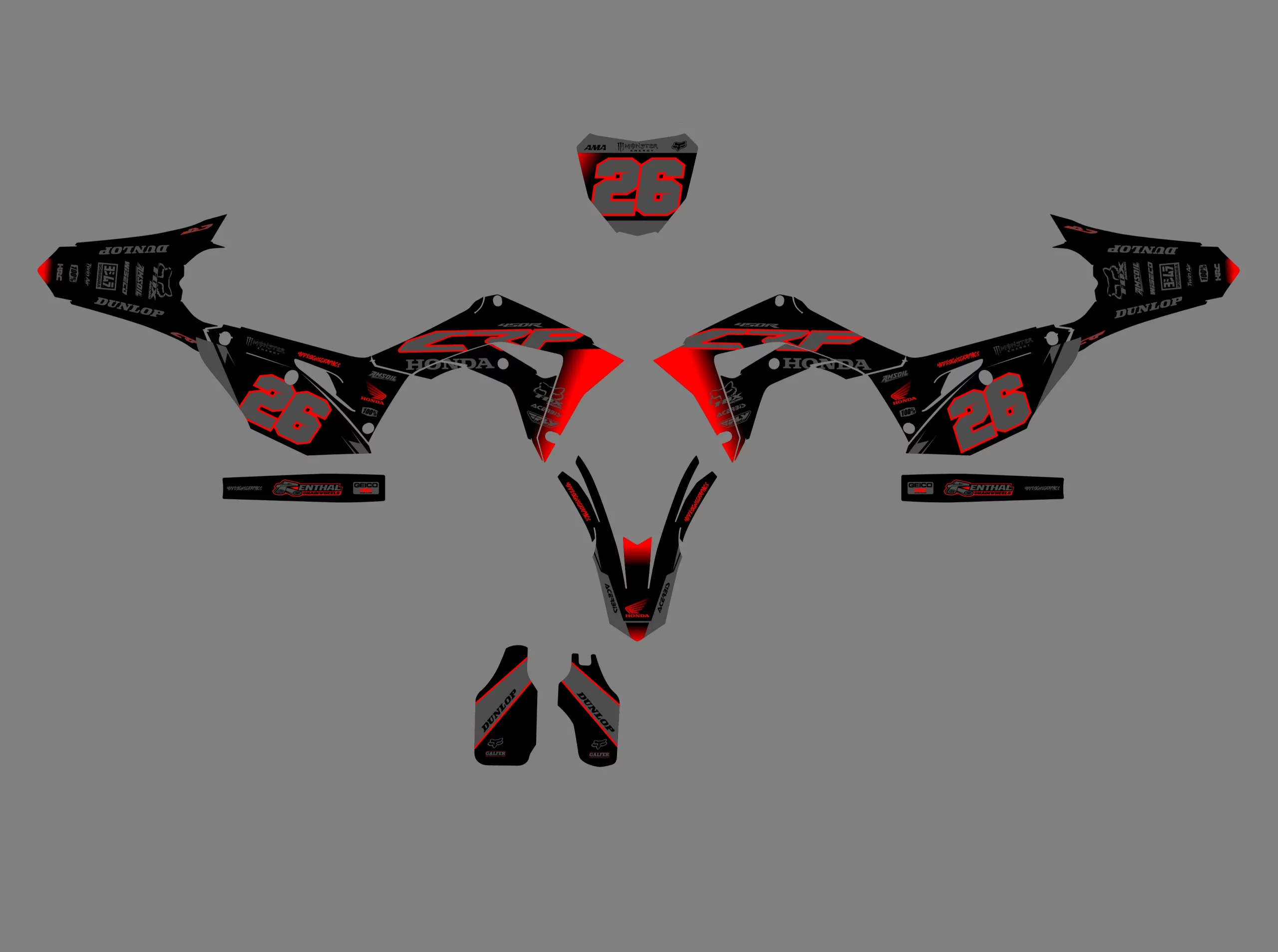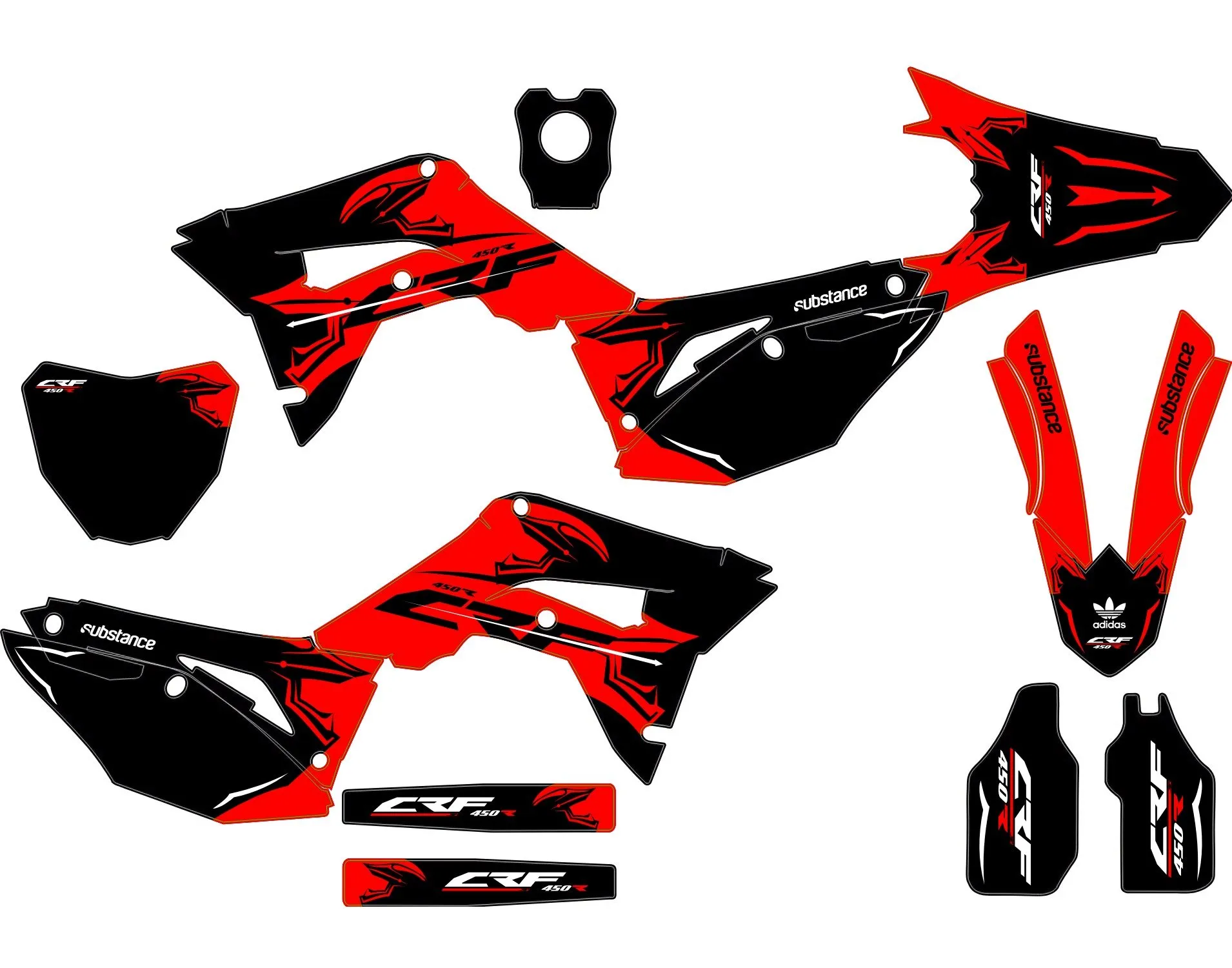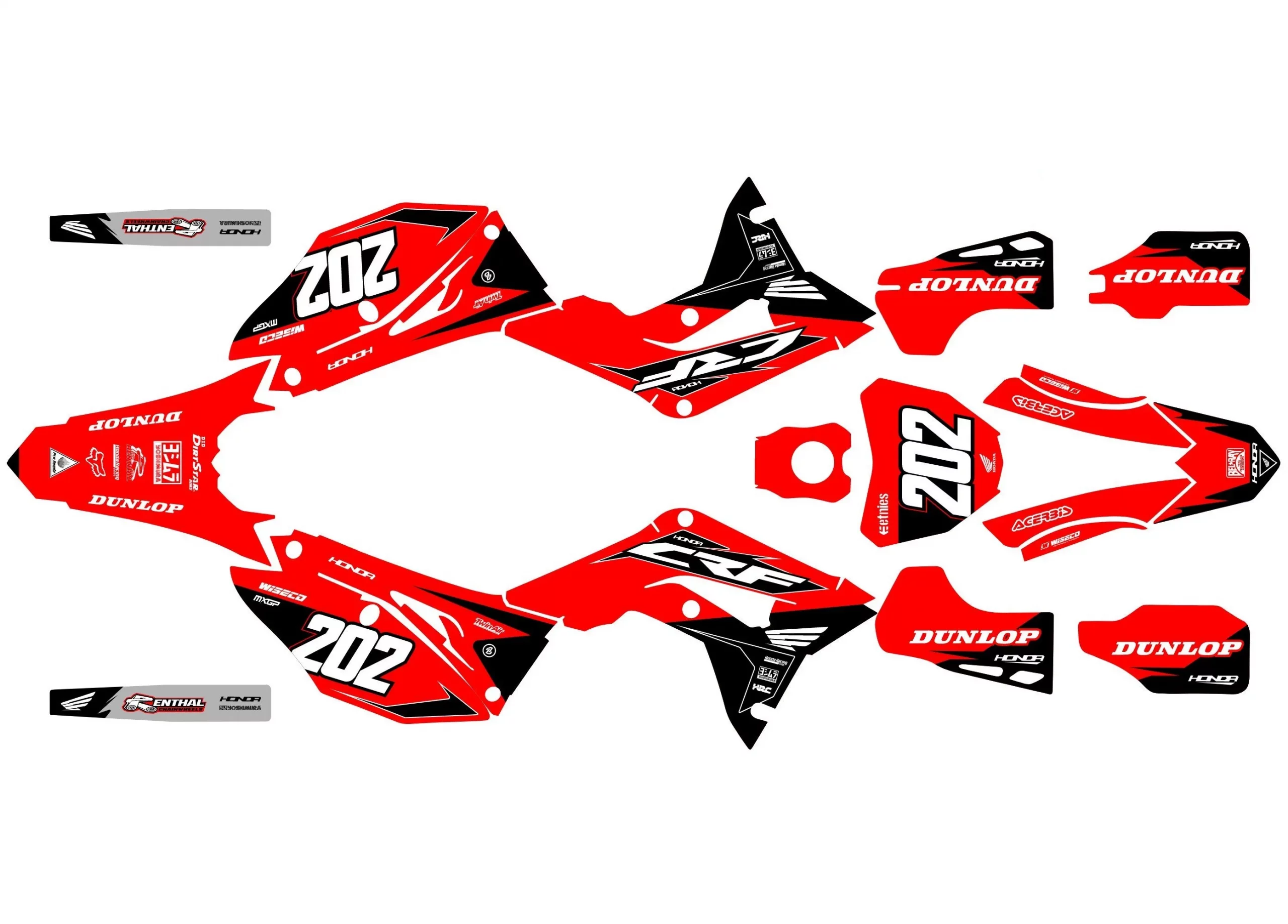 Avec le Kit déco Honda 250 CRF (2018-2021) – Factory, votre moto devient unique et vous aussi. Alors qu’attendez-vous pour donner du style à votre moto ? 🏍️