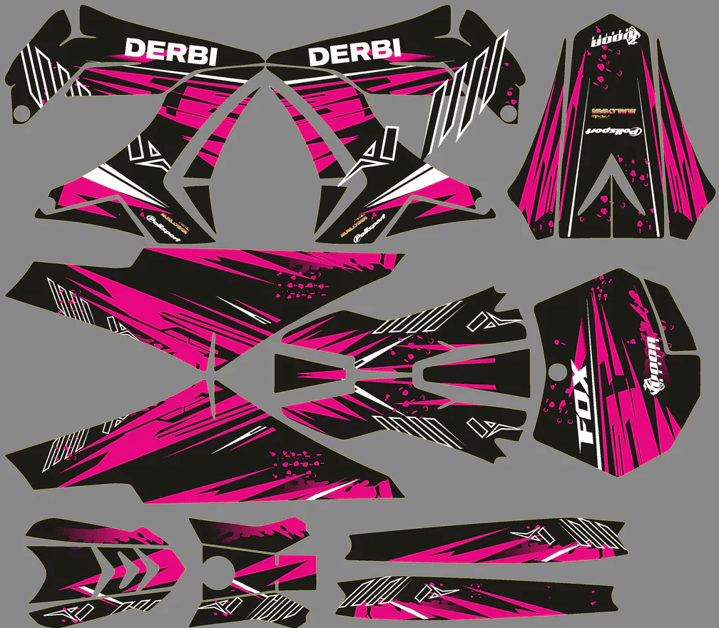👉 Pour une pose facile et sans bulle, nous vous conseillons de choisir votre Kit déco Derbi 50 – Carénage TNT – Rose en épaisseur de 550 microns.