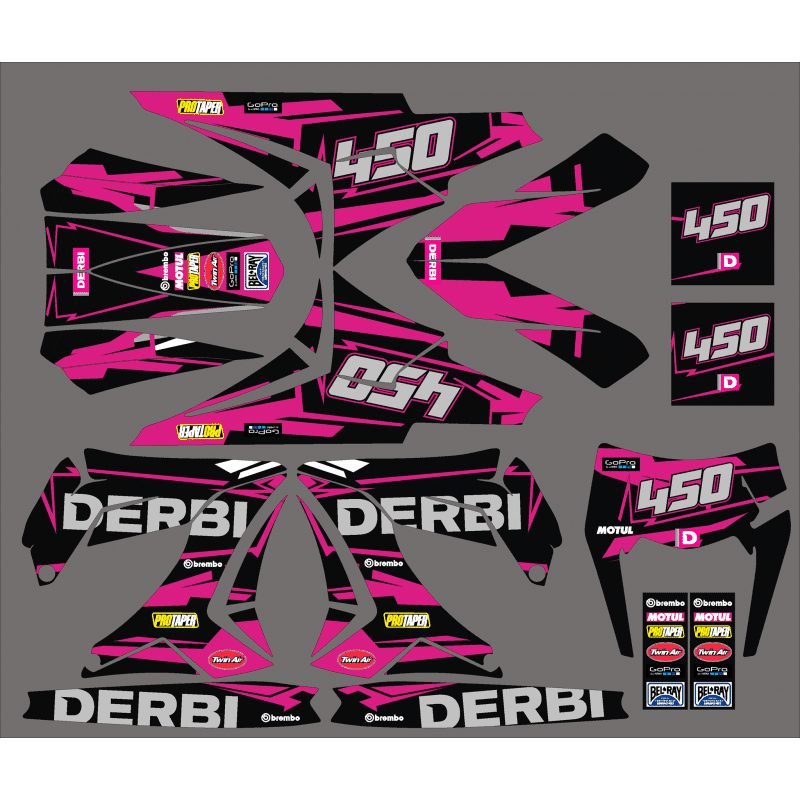 Pour une personnalisation encore plus poussée, vous pouvez customiser votre Kit déco Derbi 50 – Carénage TNT – Rose avec nos différentes options comme la base du Kit déco, la finition et pourquoi pas ajouter votre pseudo ou bien changer le numéro.
