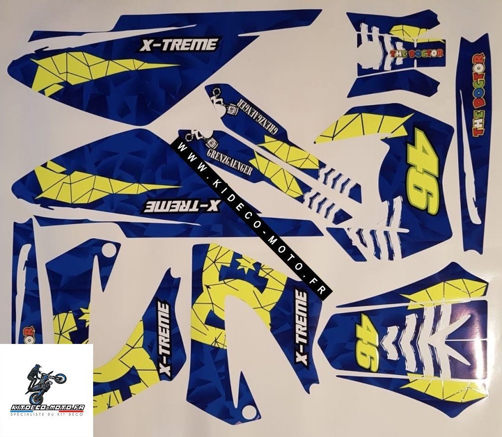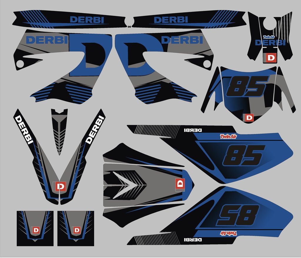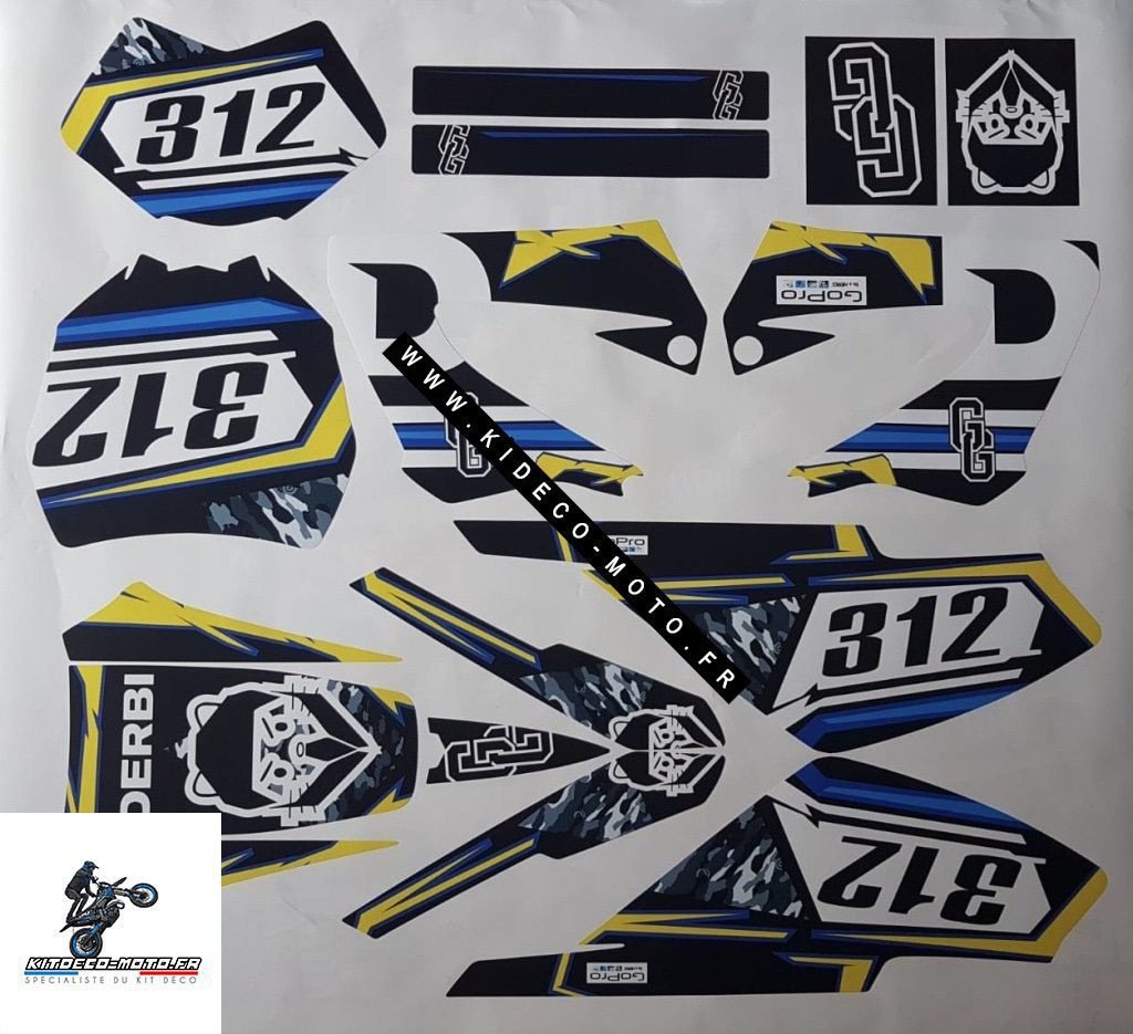 Pour une personnalisation encore plus poussée, vous pouvez customiser votre Kit déco Derbi 50 – XTREME XRACE – Origine Bleu avec nos différentes options comme la base du Kit déco, la finition et pourquoi pas ajouter votre pseudo ou bien changer le numéro.