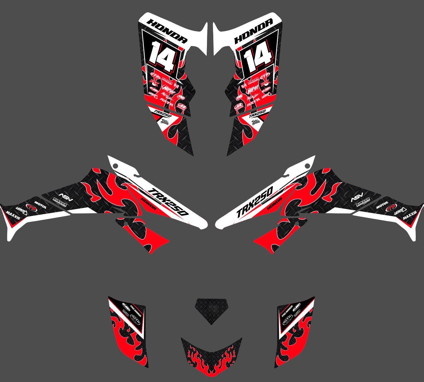 Et pour un plus grand choix, vous pouvez aussi voir tous nos Kit déco Honda 250 TRX.