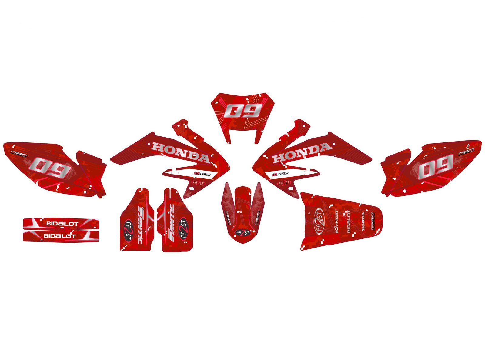 Et pour un plus grand choix, vous pouvez aussi voir tous nos Kit déco Honda HM 50cc.