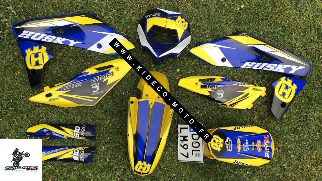 Pour une personnalisation encore plus poussée, vous pouvez customiser votre Kit déco Husqvarna 610 SM (2006-2010) – Blue & Yellow avec nos différentes options comme la base du Kit déco, la finition et pourquoi pas ajouter votre pseudo ou bien changer le numéro.