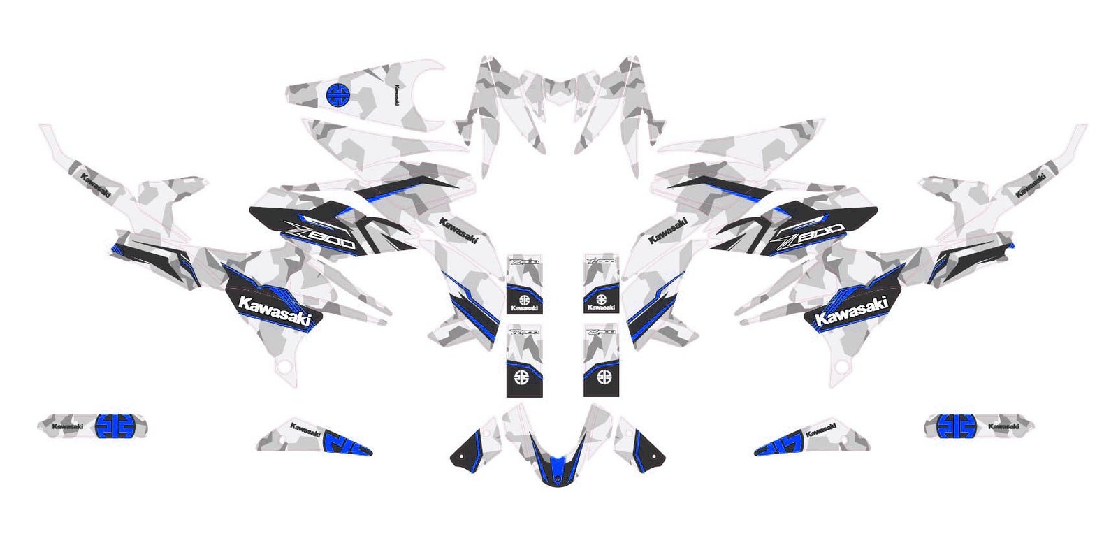 Avec le Kit déco Kawasaki Z800 – Camouflage Bleu, votre moto devient unique et vous aussi. Alors qu’attendez-vous pour donner du style à votre moto ? 🏍️