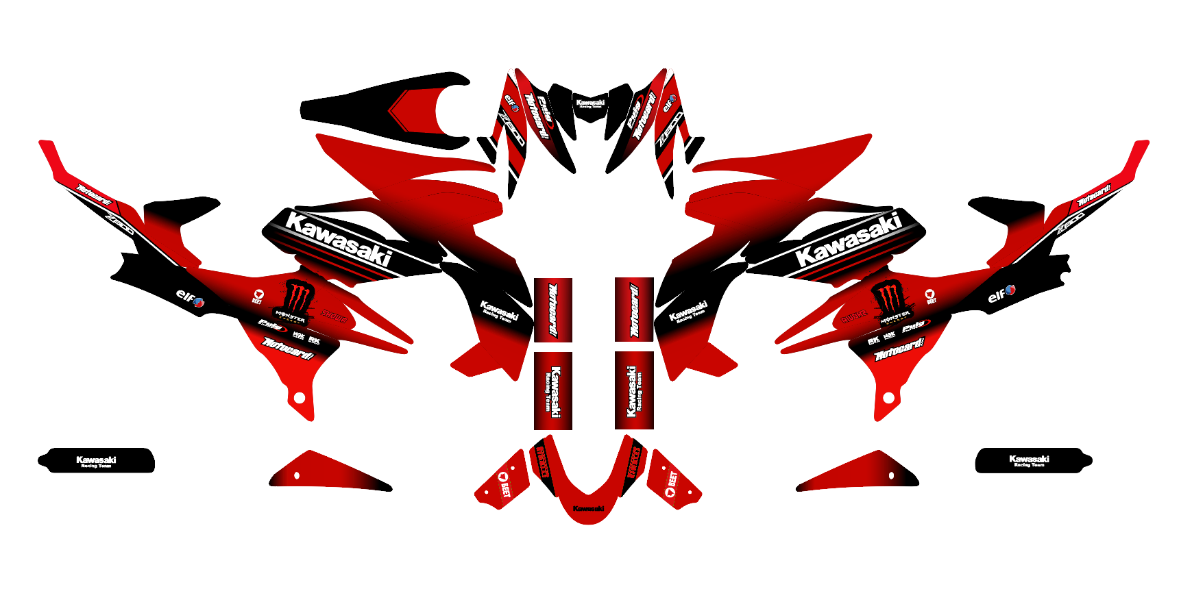 Pour une personnalisation encore plus poussée, vous pouvez customiser votre Kit déco Kawasaki Z800 – Monster Rouge avec nos différentes options comme la base du Kit déco, la finition et pourquoi pas ajouter votre pseudo ou bien changer le numéro.