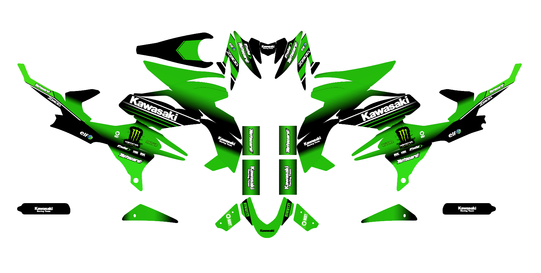Pour une personnalisation encore plus poussée, vous pouvez customiser votre Kit déco Kawasaki Z800 – Monster Vert avec nos différentes options comme la base du Kit déco, la finition et pourquoi pas ajouter votre pseudo ou bien changer le numéro.