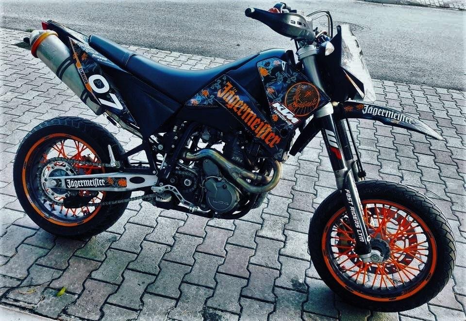 Avec le Kit déco KTM 640 LC4 – JÄgermeister, votre moto devient unique et vous aussi. Alors qu’attendez-vous pour donner du style à votre moto ? 🏍️