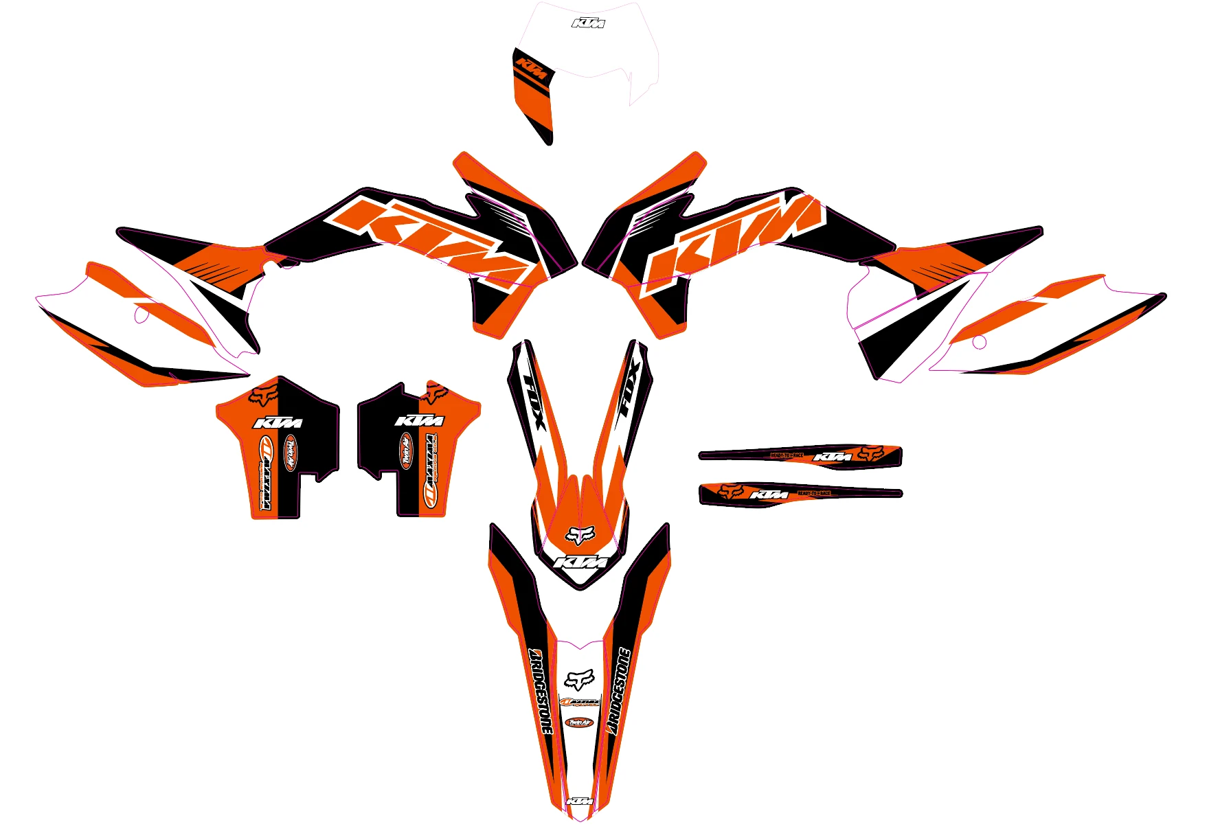 Pour une personnalisation encore plus poussée, vous pouvez customiser votre Kit déco KTM EXC / EXC-F (2014-2016) – Black avec nos différentes options comme la base du Kit déco, la finition et pourquoi pas ajouter votre pseudo ou bien changer le numéro.