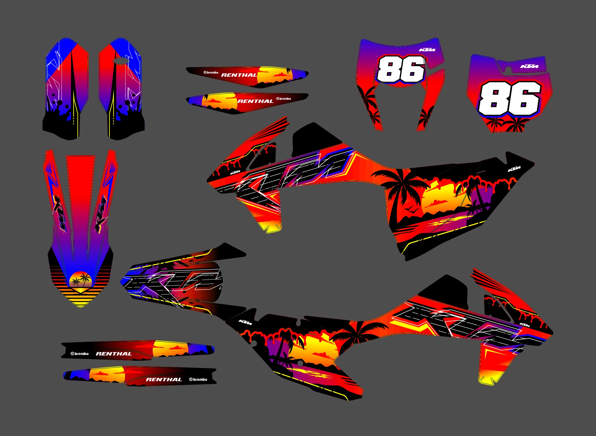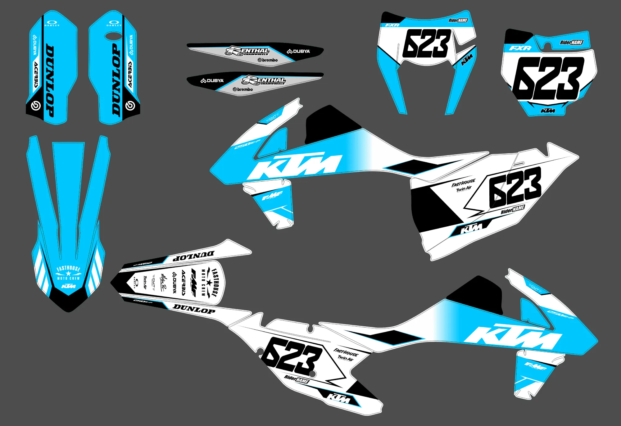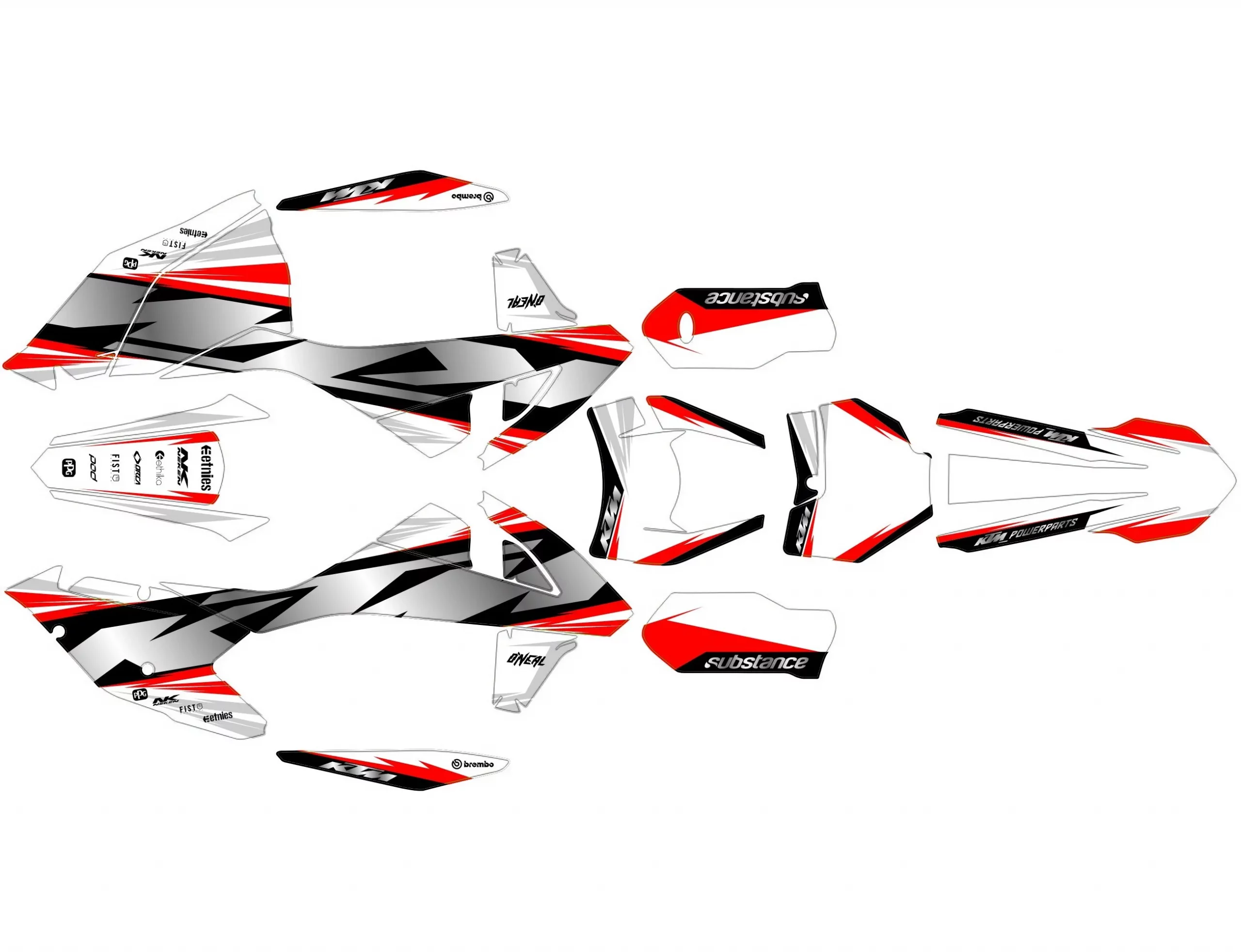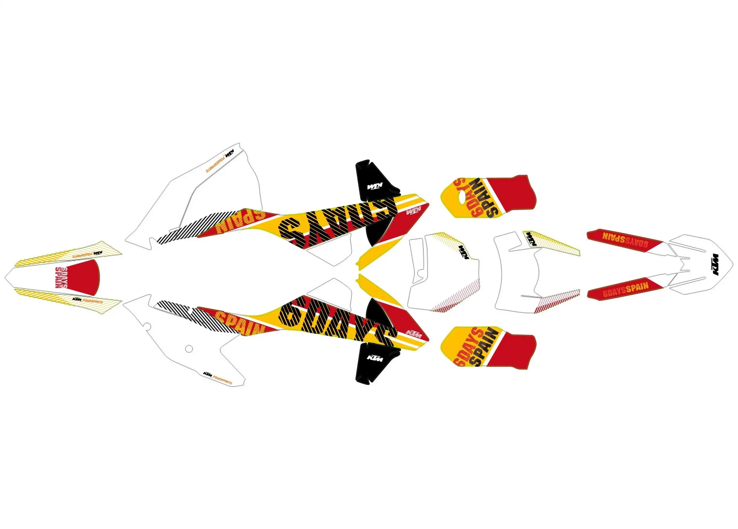 Pour une personnalisation encore plus poussée, vous pouvez customiser votre Kit déco KTM EXC / EXC-F (2017-2019) – Black avec nos différentes options comme la base du Kit déco, la finition et pourquoi pas ajouter votre pseudo ou bien changer le numéro.