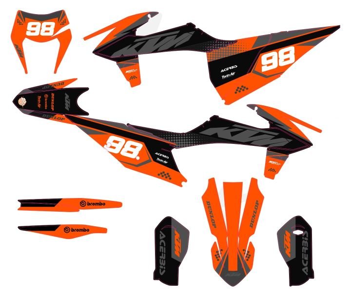 Avec le Kit déco KTM EXC / EXC-F (2020-2023) – Factory Racing, votre moto devient unique et vous aussi. Alors qu’attendez-vous pour donner du style à votre moto ? 🏍️