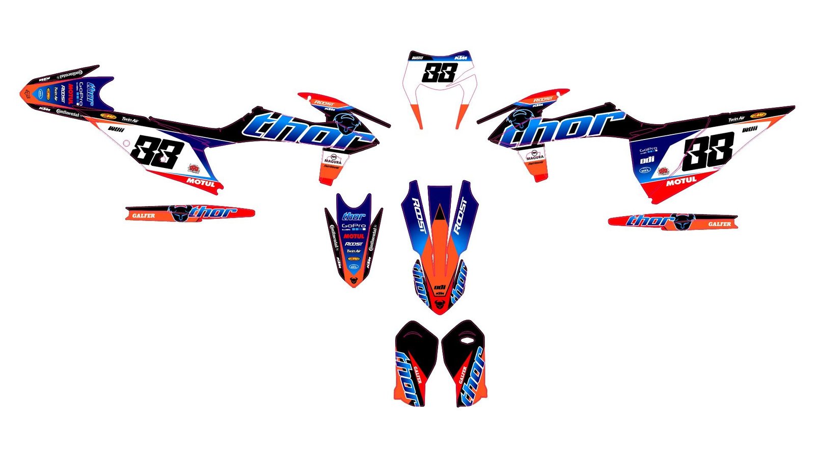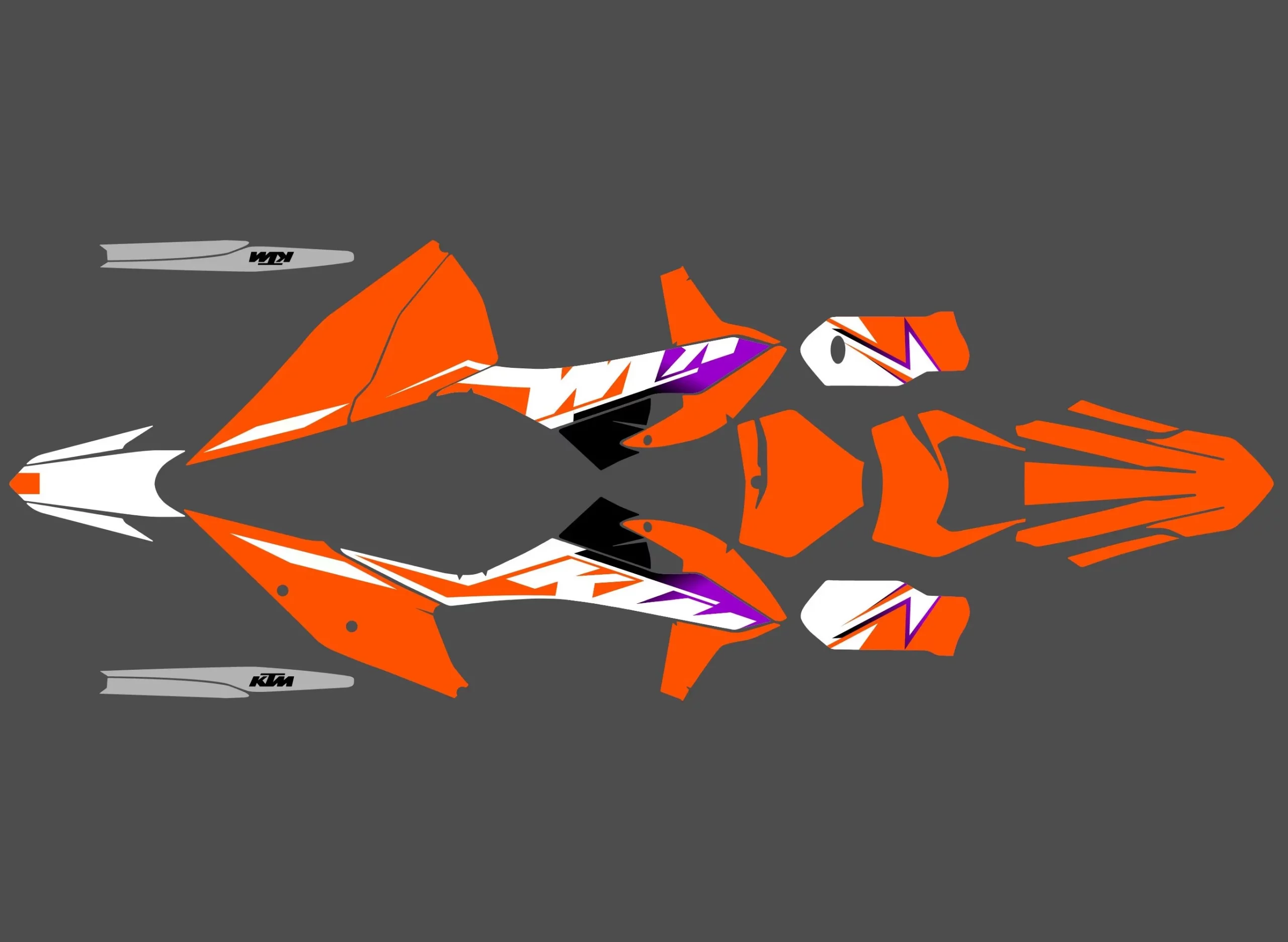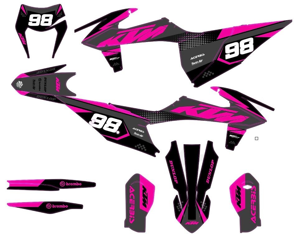 Pour une personnalisation encore plus poussée, vous pouvez customiser votre Kit déco KTM EXC / EXC-F (2020-2023) – Factory Racing avec nos différentes options comme la base du Kit déco, la finition et pourquoi pas ajouter votre pseudo ou bien changer le numéro.