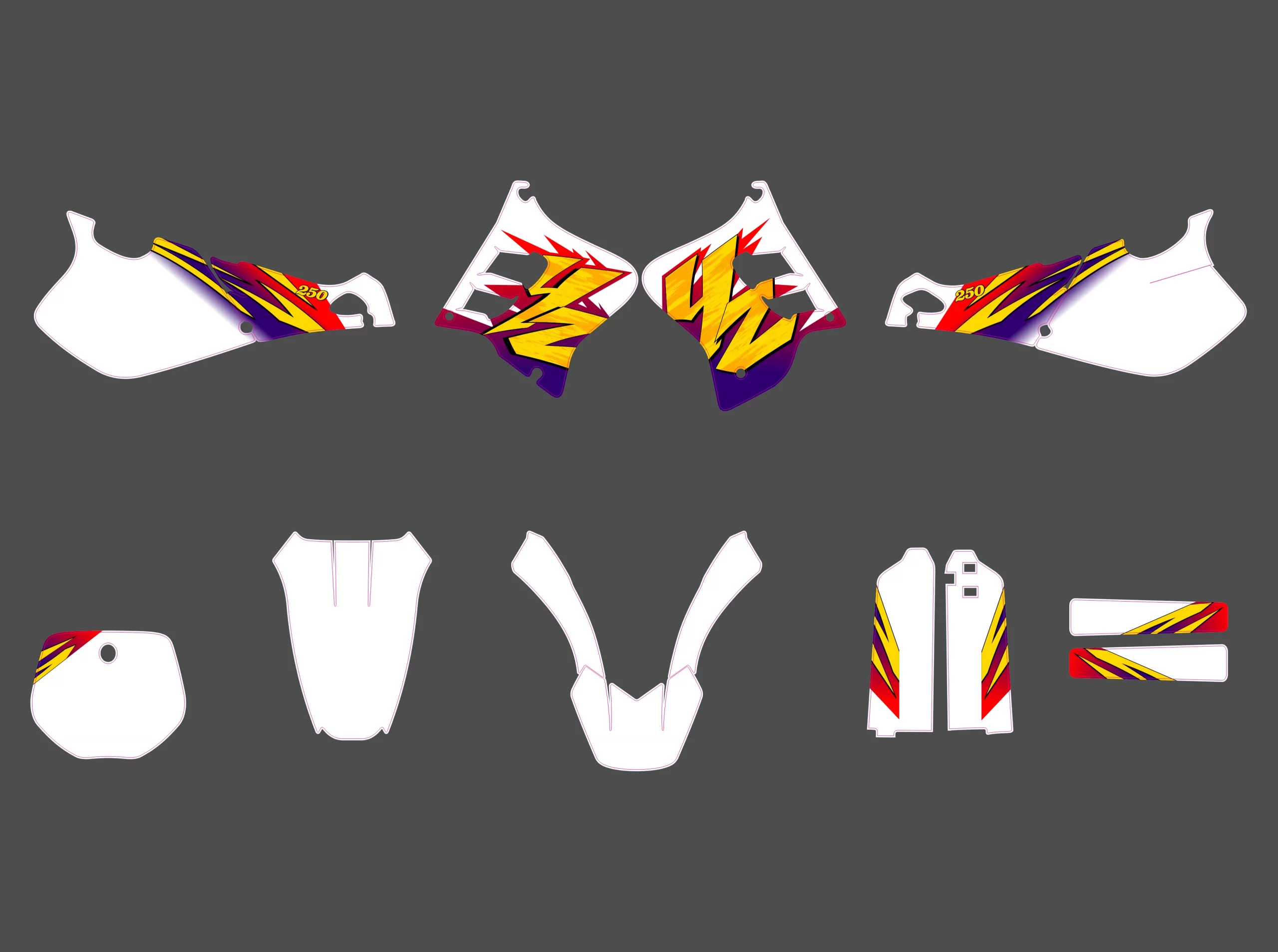 Pour une personnalisation encore plus poussée, vous pouvez customiser votre Kit déco Yamaha 250 YZ (1993-1995) – Origine #2 avec nos différentes options comme la base du Kit déco, la finition et pourquoi pas ajouter votre pseudo ou bien changer le numéro.