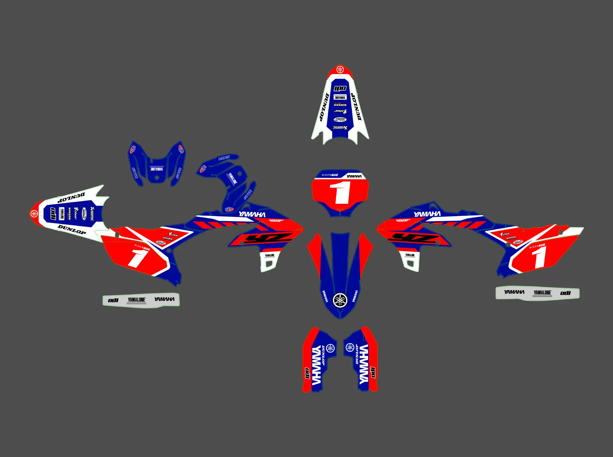 Avec le Kit déco Yamaha 450 YZF (2023-2024) – Origine, votre moto devient unique et vous aussi. Alors qu’attendez-vous pour donner du style à votre moto ? 🏍️