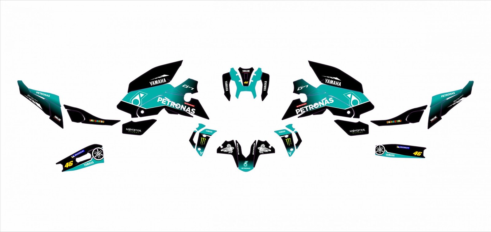 Pour une personnalisation encore plus poussée, vous pouvez customiser votre Kit déco Yamaha MT 07 – Petronas VR46 avec nos différentes options comme la base du Kit déco, la finition et pourquoi pas ajouter votre pseudo ou bien changer le numéro.